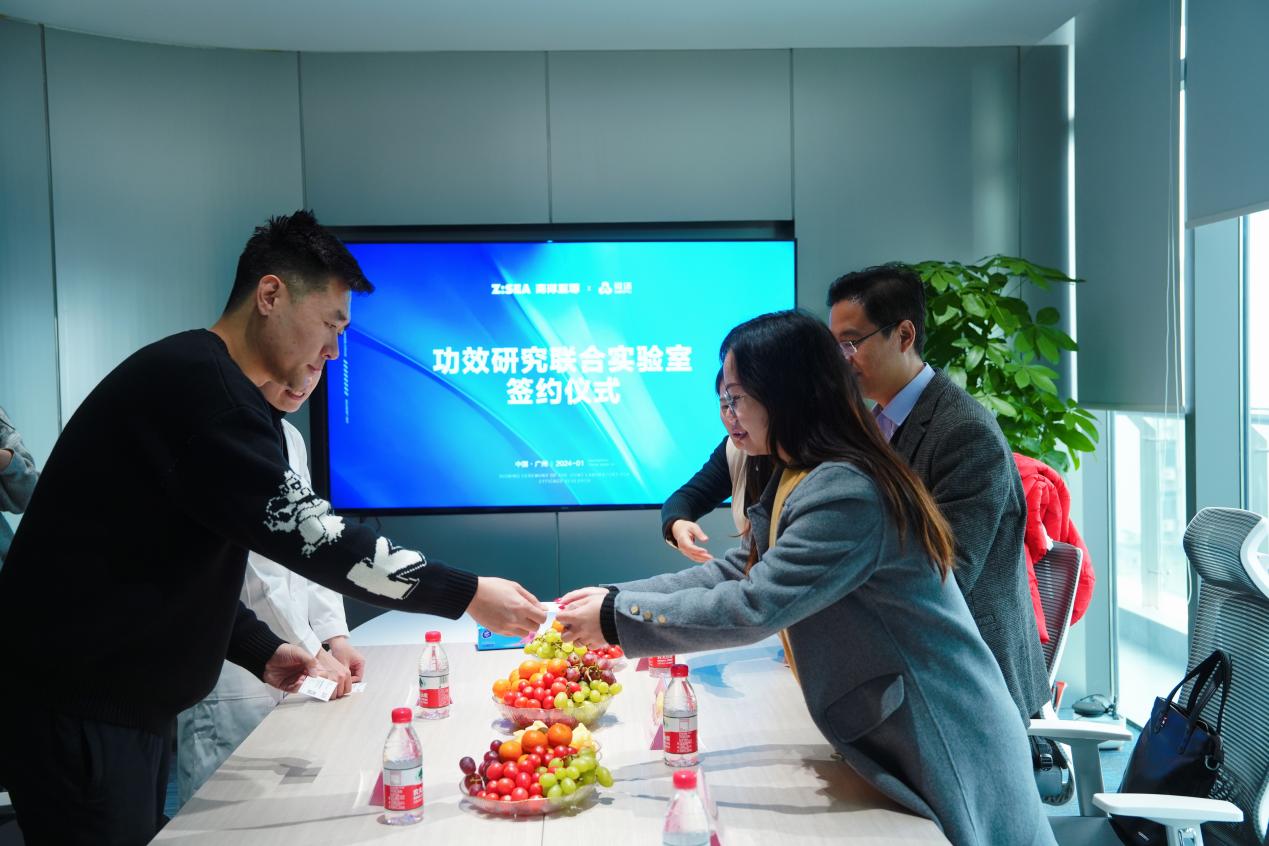 2024年1月,海洋至尊与上海微谱检测科技集团股份有限公司,正式在线下签署“联合研究”战略协议,并举办功效研究联合实验室挂牌成立仪式,就非注册备案用途的人体安全性及人体功效性、消费者调研、注册备案用途的人体安全性及人体功效性测试、消费者调研等领域开展合作。双方均以优秀的企业理念与专业性,本着“互惠、互利、稳定、恒久、高效、优质”的合作精神,结成深度的战略合作伙伴关系。